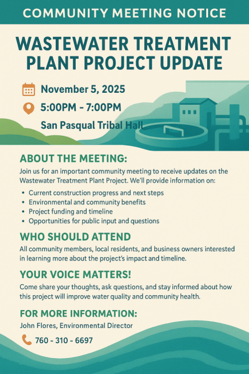 Wastewater Treatment Plant Project Udate - November 5th - Tribal Hall - Click For More Info